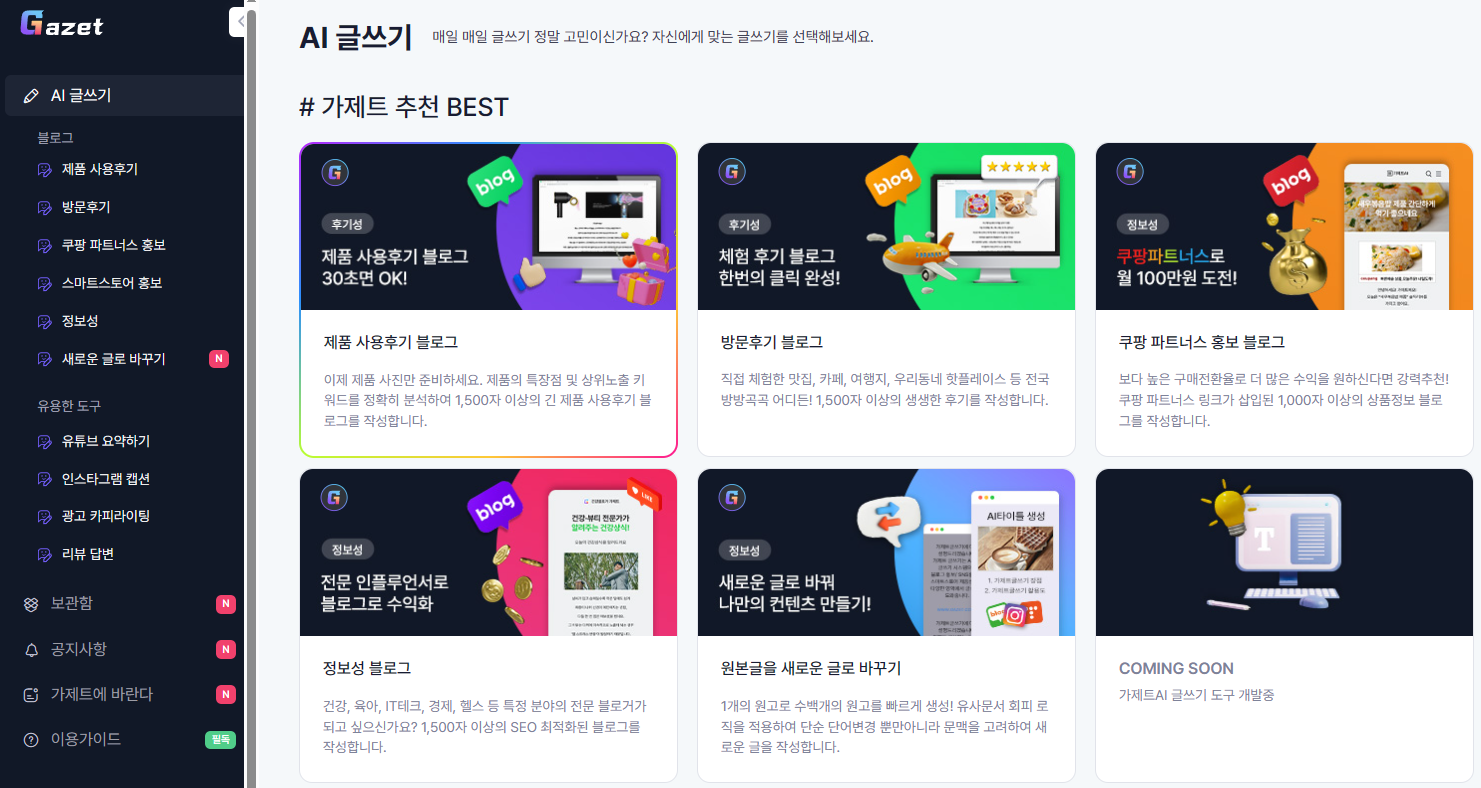 추천 AI 글쓰기 : 가제트AI